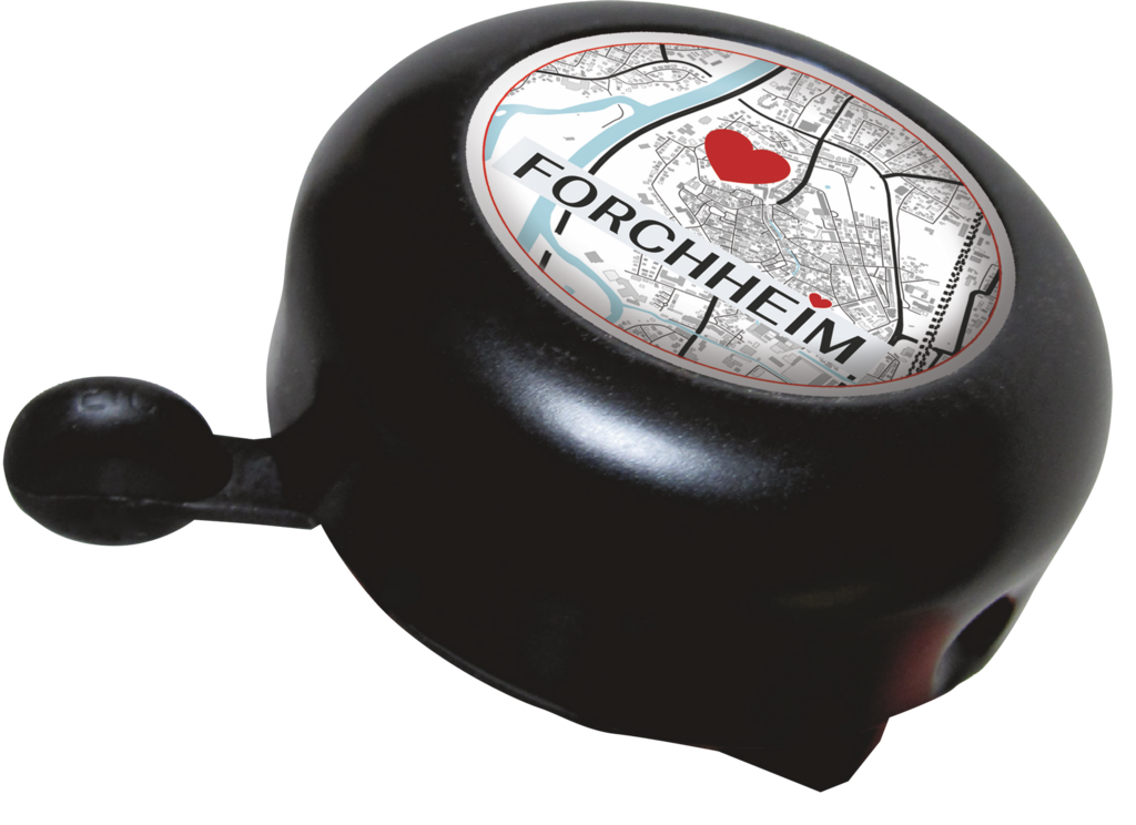Ein ganz außergewöhnliches Souvenir. Die schwarze Fahrradklingel hat einen Durchmesser von ca. 5,3 cm und ist mit einem Motiv Ihres Ortes versehen. Sie lässt sich an jedem handelsüblichen Fahrradlenker monieren.