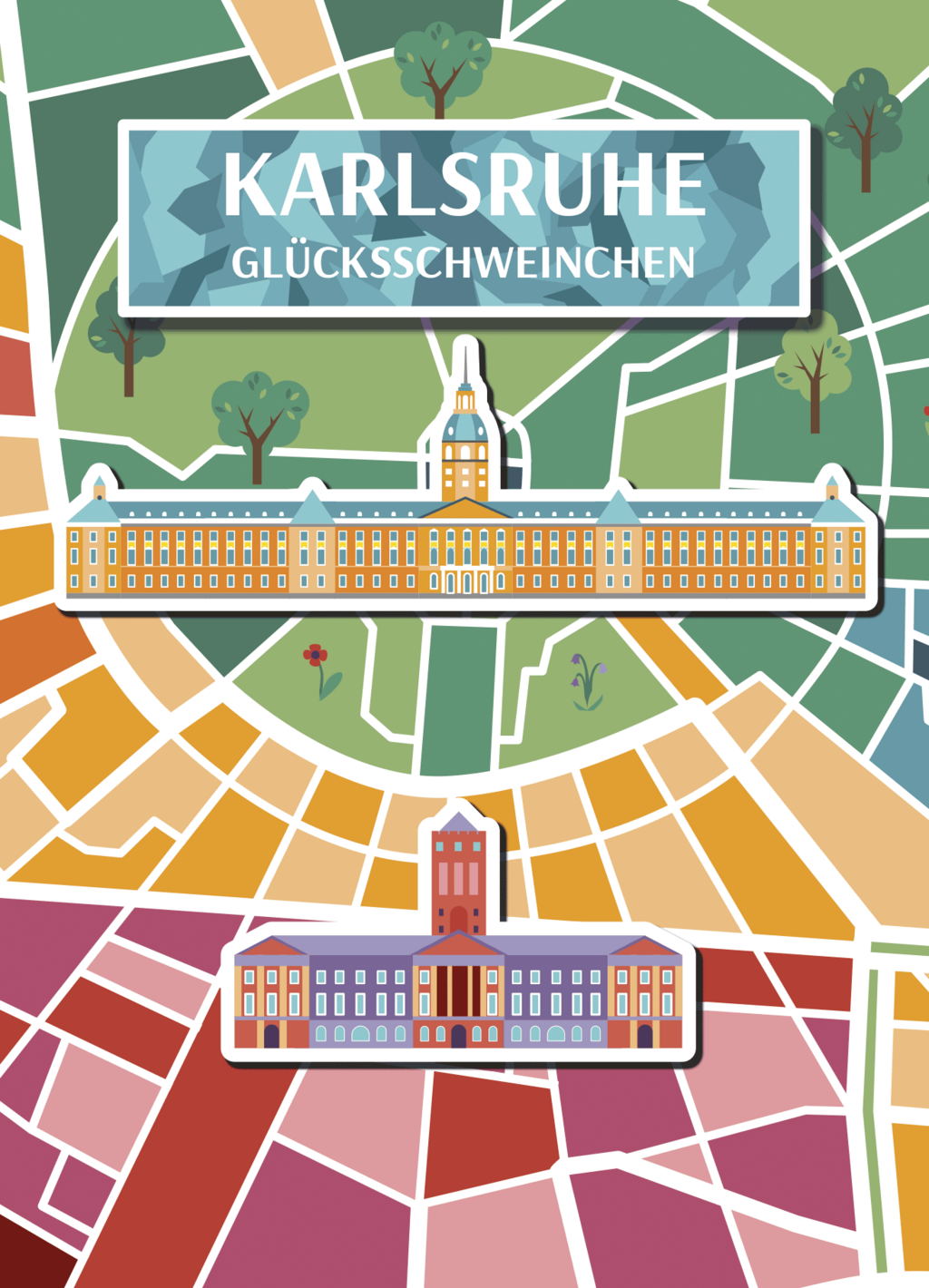 Ihre Stadt als farbenfrohe Karte mit den schönsten Sehenswürdigkeiten.