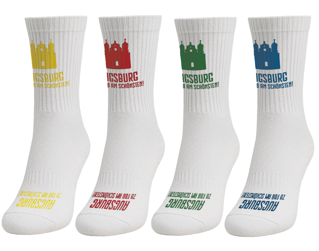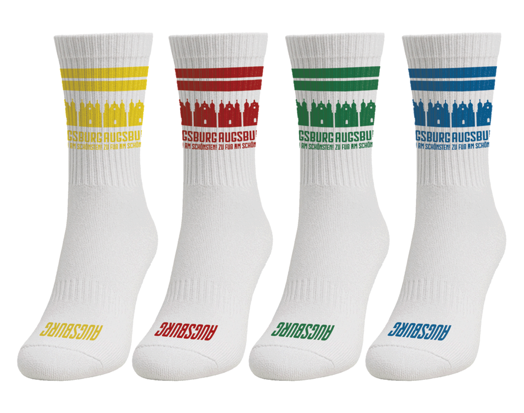 Unsere Sportsocke mit 80 % Baumwolle vereint Komfort und Design – mit individuellem Motiv Ihrer Stadt und passendem Schriftzug, wahlweise in Gelb, Grün, Blau, Rot oder Schwarz.