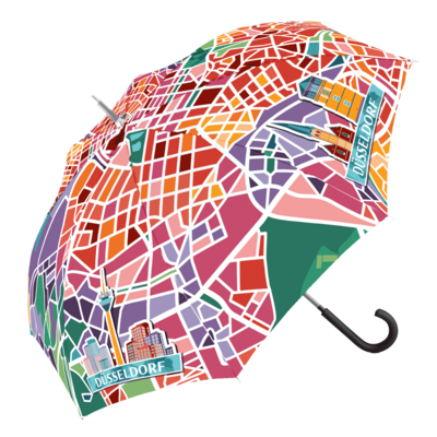 Stockschirme und Taschenschirme mit Automatiköffnung. Selbstverständlich sind alle Schirme windproof-überschlagsicher. Schwarzer Stahlschirm mit Kunststoffgriff.